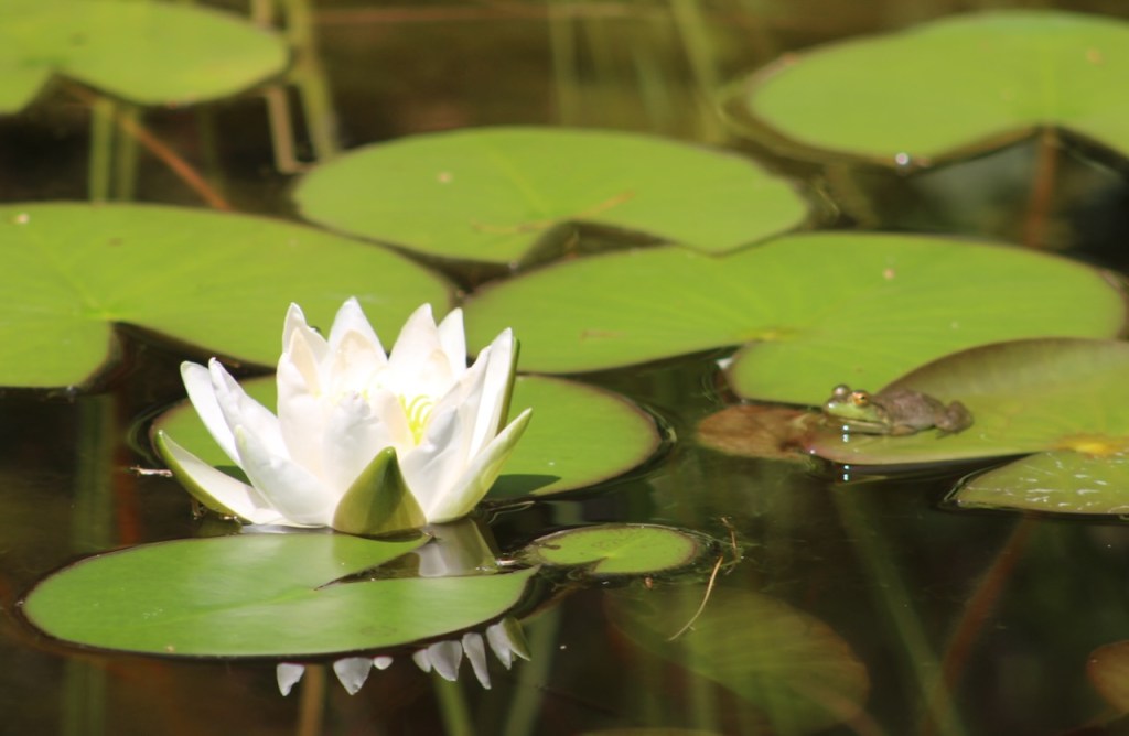 The more I try to garden, the more I realize what I don’t know. But it makes me happy that critters feel at home with us here. Unfortunately, the groundhog has dug a few holes to get under our garage–we don’t want her to feel that at home, such that she undermines the foundation. So I refill the holes any time I see them, and then pour some human urine on the area, hoping it will discourage her from more digging. Marking our territory, so to speak. We’ll see if that keeps working.