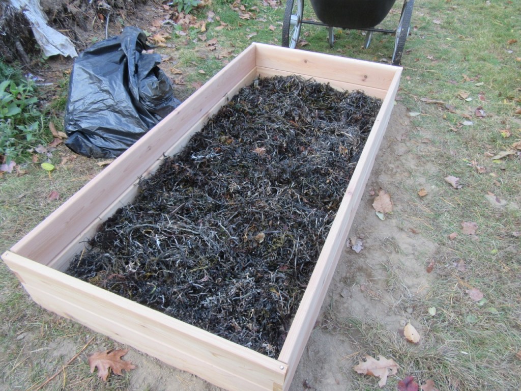 Wow! It feels like spring is finally here. Last week was a flurry of activity in our yard, and I had the energy to do it! And it was warm and sunny! We had a timeline. On Tuesday, all day I was sifting the remains of the old compost pile, and putting it everywhere–in the new raised bed, on the hugelkultur mound, the asparagus beds, under many of the fruit trees, the old potato patch, and an area near the baby apple trees in which I hope to plant zucchini this year. We have had to sift the compost because roots had worked their way into the pile from the edges, including invasive bittersweet which we do not want to spread around the garden.