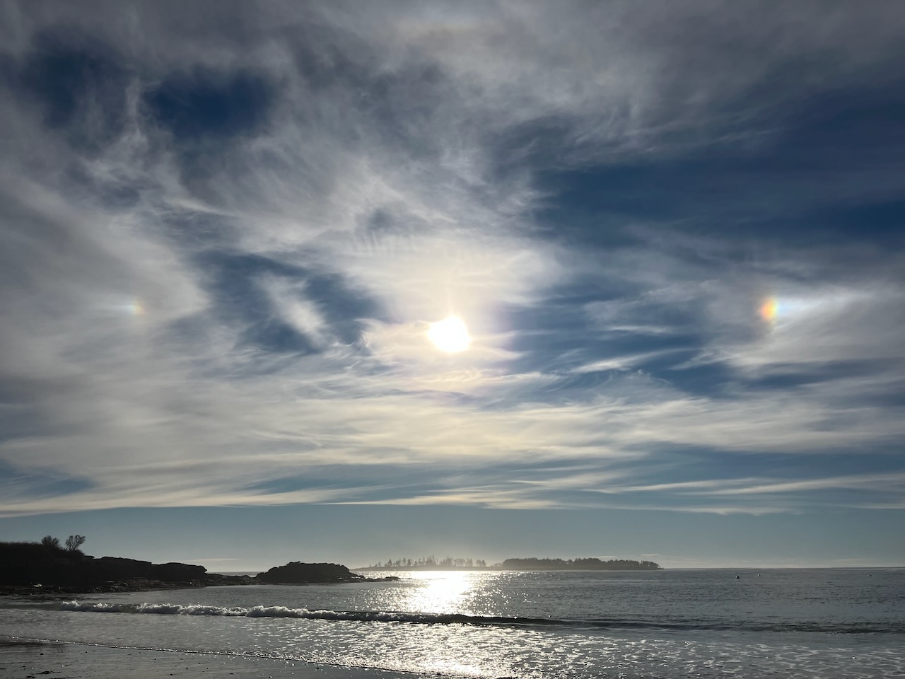 At 4 a.m. this morning, I woke in the dark of the night to pee. On the way back to bed, I saw a shadow outside the window. It was a bright night, with white snow on the ground, and a clouded sky backlit by a full moon. I opened the curtain and saw that the shadow was a small deer by the bird feeder. It was investigating the seeds on the ground below, and perhaps the water in the heated bird bath. Then it walked toward me and made its way through the orchard, passing over to the side of the house and then toward the road.