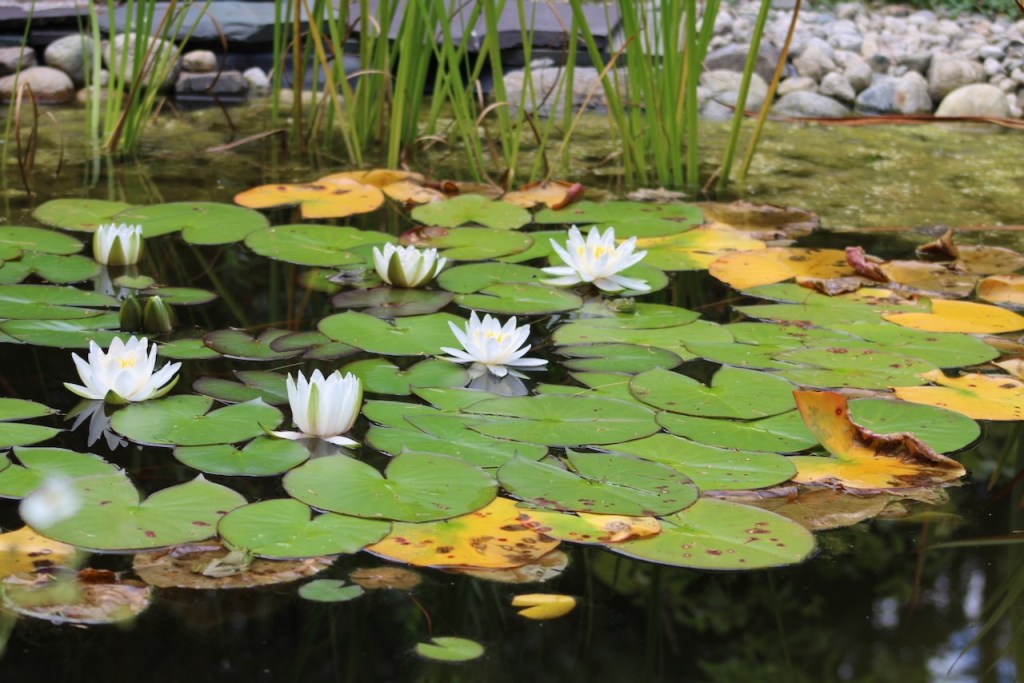 Another source of joy are the pond lilies, that have also multiplied. In other years, we’ve had many one bloom the whole summer, or maybe one bloom at a time. So in the morning, I see these sunflowers out my window. Then I take a little walk back to the pond, and see the blooms, and the little frogs. I hope they will bring a smile to you as well.