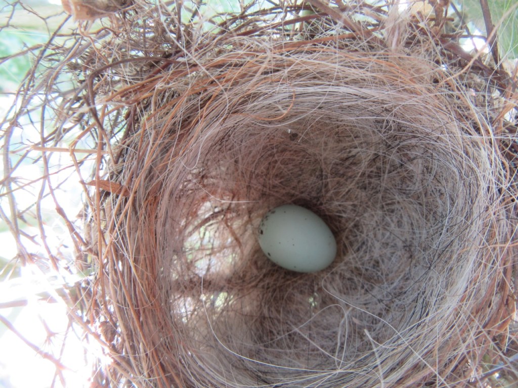 Curious, I carefully put my finger into the nest (which had been empty the day before) and ever so gently touched the smooth shell of an egg. Holding my camera above the nest, I confirmed it.