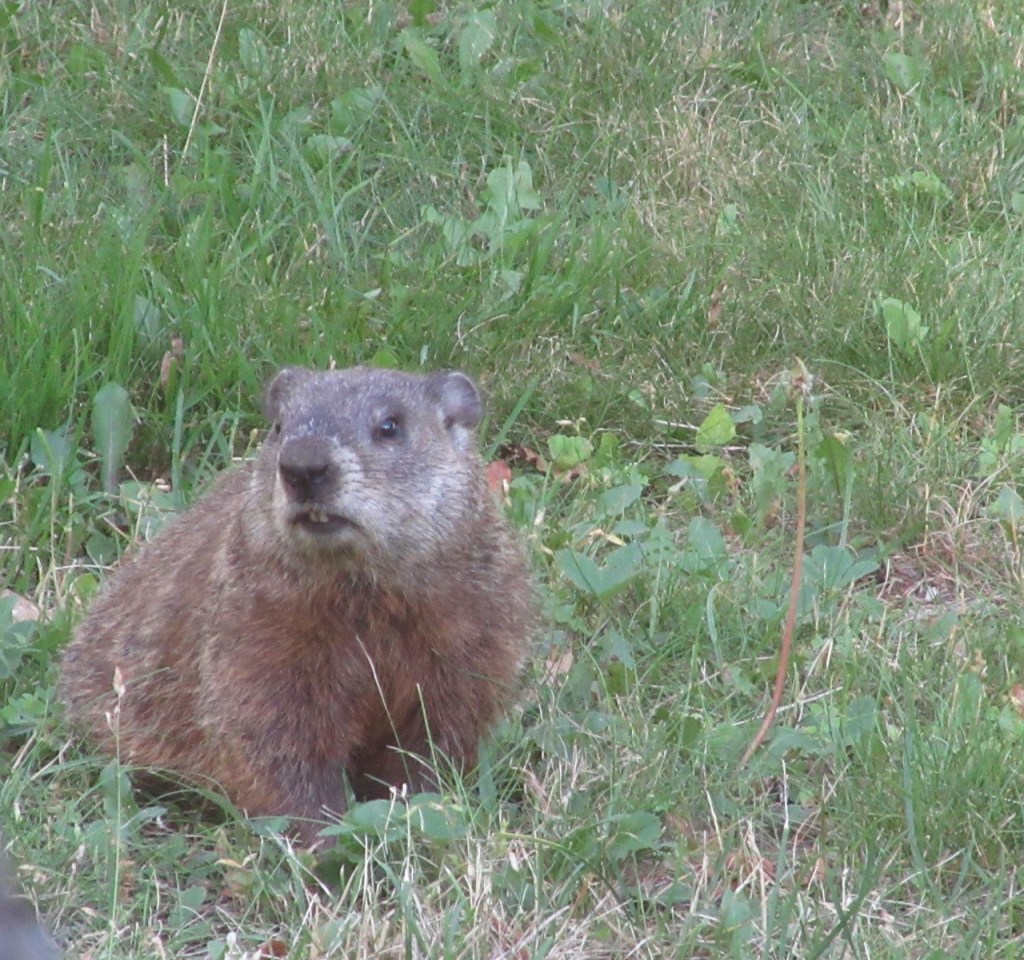 The squirrels are always fairly bold, but the groundhog is shy and runs away as soon as she sees us on the back porch. So this photo was from a back window.
