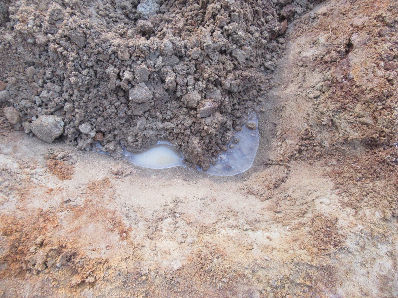 Hurray! I’ve been back to digging the pond the last couple days, and today I finished the bottom layer! I hit clay soil at about 2 1/2 feet down, and went a little deeper in one spot. For those who were wondering about the water that showed up in the bottom, I learned, after consulting other folks, that it’s probably not really a bit deal. It might possibly lift the liner in the spring a small amount, but on the other hand, the water in the pond might have enough weight to counter that. In any case, over the last several days of not much rain, there is no standing water, though the soil I’ve dug out has been damp.