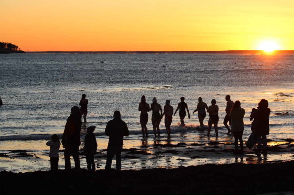 And then we had another surprise treat. The local mermaids came to the beach for a Solstice swim in the cold ocean. We did not join them but we had fun watching them brave the waves.
