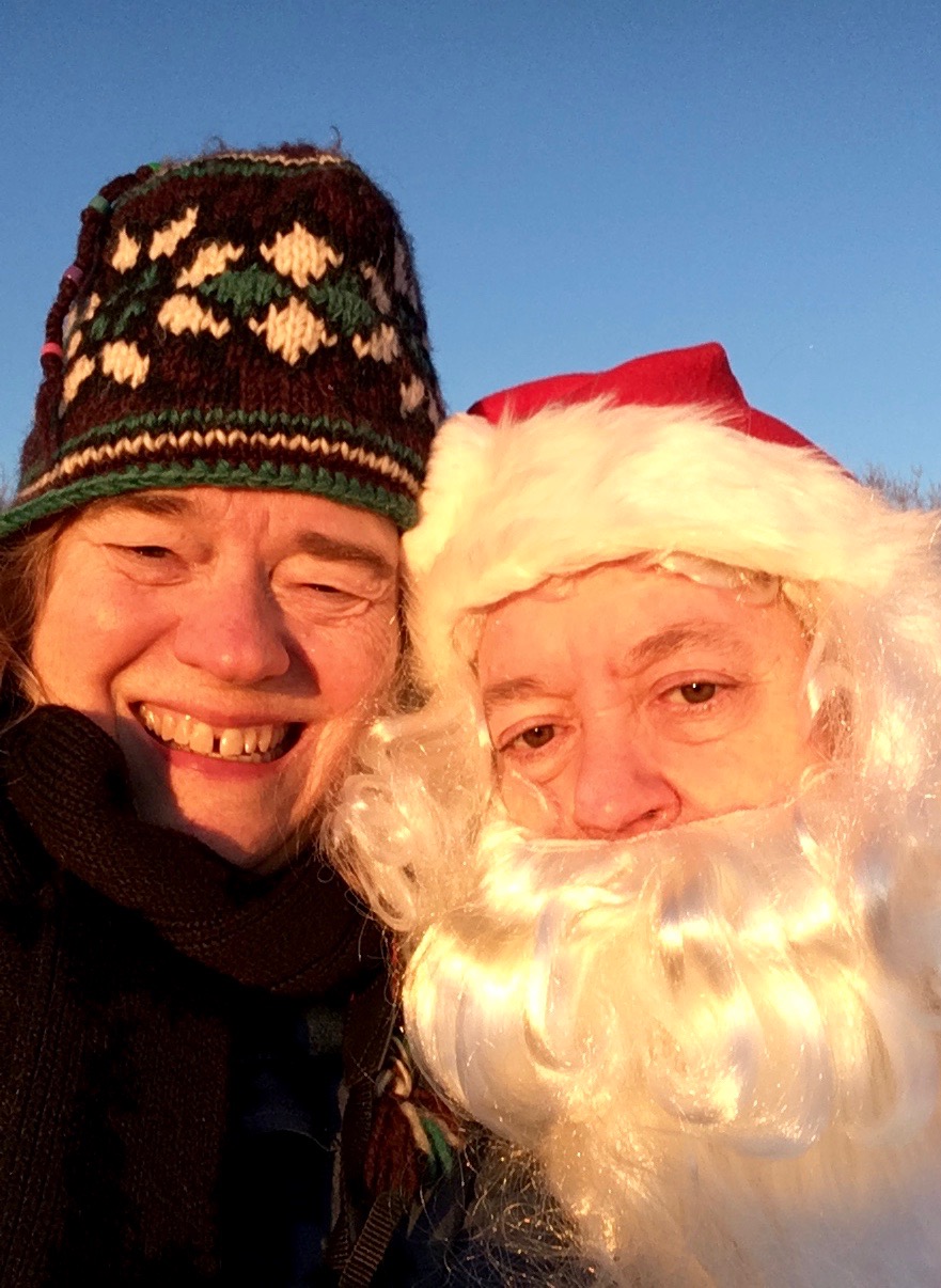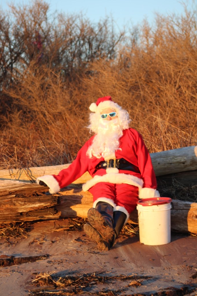 Oh look, who is that with Santa? It’s me! I was also sitting on that log. It’s a Santa selfie. The setting sun was bright upon our faces and we gave thanks for all the sun brings to us.